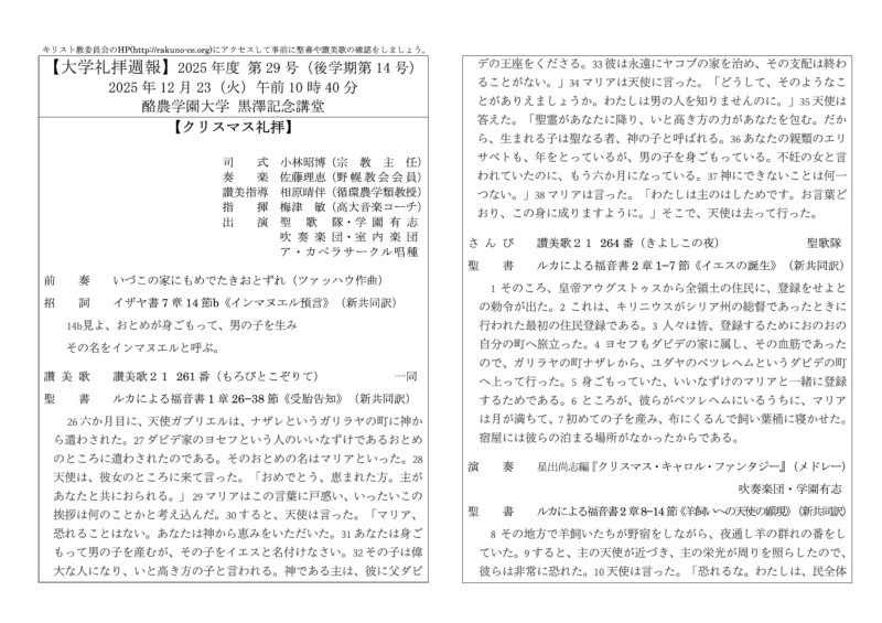 出 演:聖歌隊・学園有志・吹奏楽団・室内楽団・ア・カペラサークル唱種
